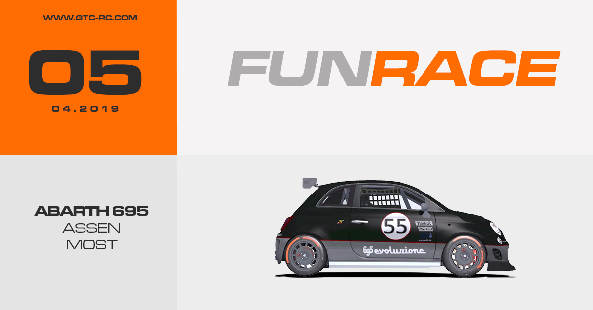 ¡Corre durante 90 minutos por 11 euros y demuestra que puedes subir al pódium! Coches: Abarth 695 21:30 - Assen 22:30 - Most