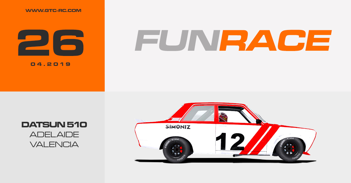 Corremos en casa ¿Te apetece demostrar que eres el mejor piloto? Coches: Datsun 510 21:30 - Adelaide 22:30 - Valencia