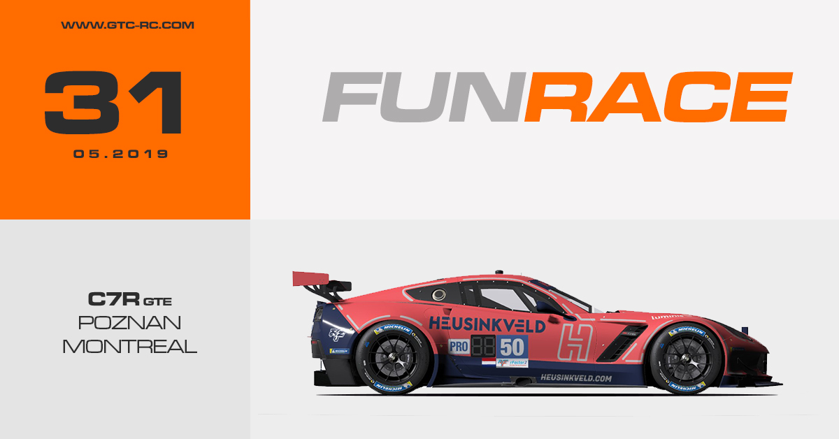 Último viernes del mes para correr una Fun Race. Descarga la adrenalina durante 90 minutos por 11 euros. Coches: C7R GTE 21:30 - Poznan 22:30 - Montreal